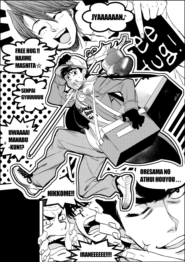 はじっ歩コピ本の表紙です。今回は相方のカミザキと合同で出します~^^板一中心に鴨川メンバーでワイワイなお話。