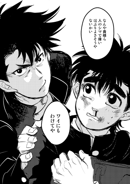 そんで一歩を助けた後ファミレスつれこんで「男やったらやられたらやりかえさなあかんで!」ってお説教したところで、ご飯食べて言うこと言ってスッキリ。またよそで事件あって「まっとれ今行くで!!ほななボーズ!」ってお代払い忘れて帰ってしまって、結局一歩が払うので間接的カツアゲである だめだこのこ